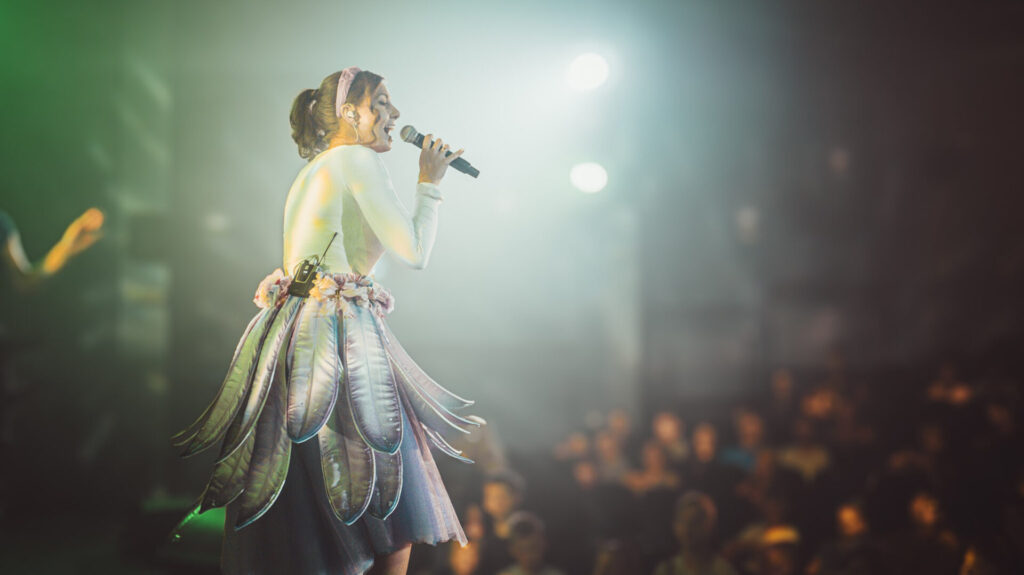 Koncerty są bardzo energiczne, uzupełnione o dynamiczne brzmienie perkusji – tak Noemi gra koncerty z żywymi muzykami, co pozwala żywo reagować, na to co się dzieje podczas, a dzieje się naprawdę bardzo dużo.